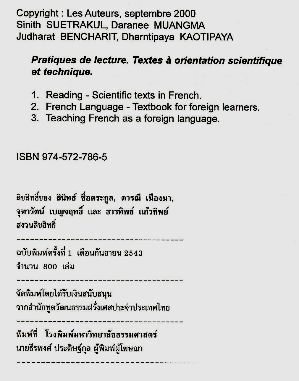 Thammasat University, Bangkok, 1999. Auteurs PréfaceISBN 974-572-786-5